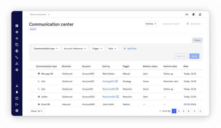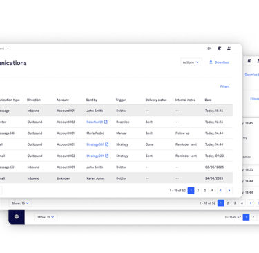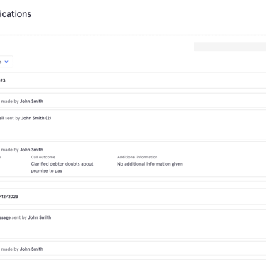 Flexible filtering options: to enhance usability, we have introduced flexible filtering capabilities. Users can now filter communications based on various parameters such as account reference, trigger, and date, making it easier to locate and manage specific interactions.