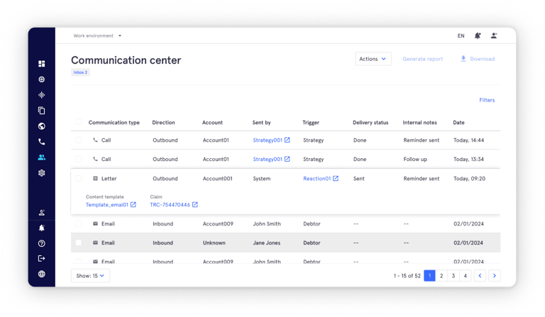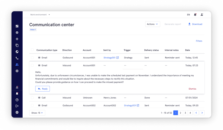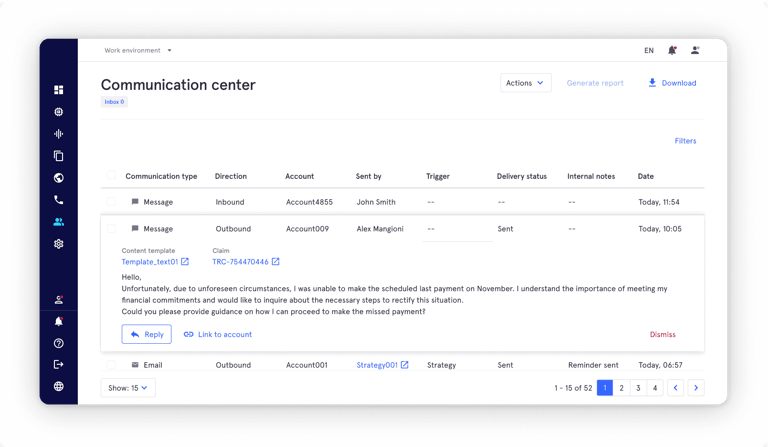 With the "Communication center" now fully implemented, agents are experiencing significant benefits. It efficiently consolidates all debtor communications—letters, calls, messages, and emails—into one streamlined interface. Agents can quickly view, filter, and respond to both inbound and outbound communications in real-time. These enhancements have streamlined workflows, improved engagement, and significantly boosted productivity.