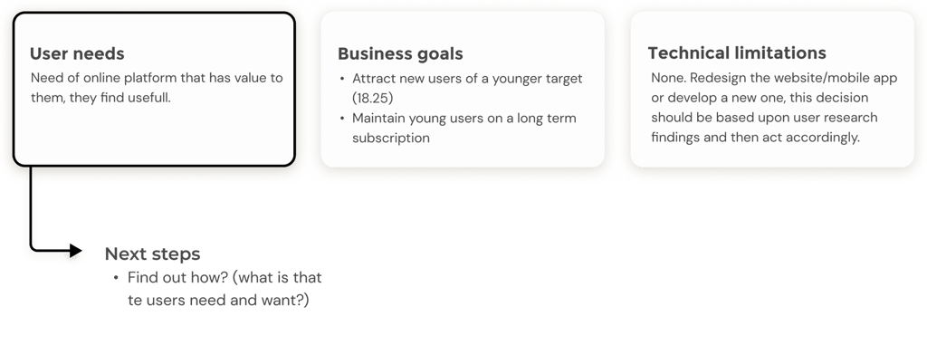 To kick-start the design process we had a meeting with two stakeholders from Público. Our focus was to extract information from three mains areas: