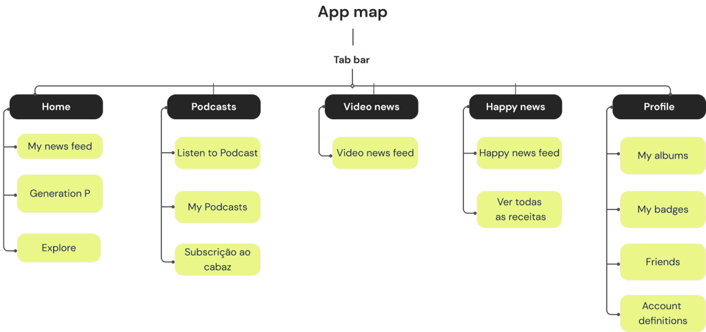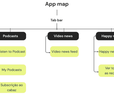 To start defining the possible structure of the app before starting designing the wireframes we did a hierarchical diagram representing the possible menus and screens.