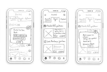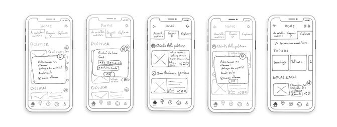 I was responsible for the design of the screen/flow of the menu "Home" and its submenus, so for the purpose of this case study, from now on, I will only detailed show the process of this design. I designed the paper wireframes in more detail and did a prototype in figma. After, it was conducted usability tests with potential users to identify possible painpoints.