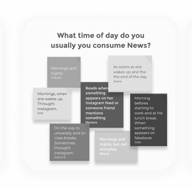 We did some research about gen Z and Y news consumption. We consulted a report: "How young people consume news and the implications for mainstream media", by Flamingo commissioned by the Reuters Institute for the study of journalism, Oxford University. This report is based on the study of 20 people from gen Z and Y, from USA and UK.